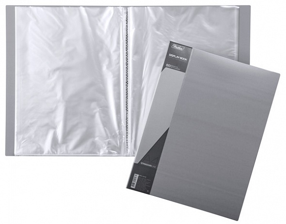Папка Пластиковая Hatber 80 вкладышей А4ф корешок 40 мм STANDARD 800мкм- Серая