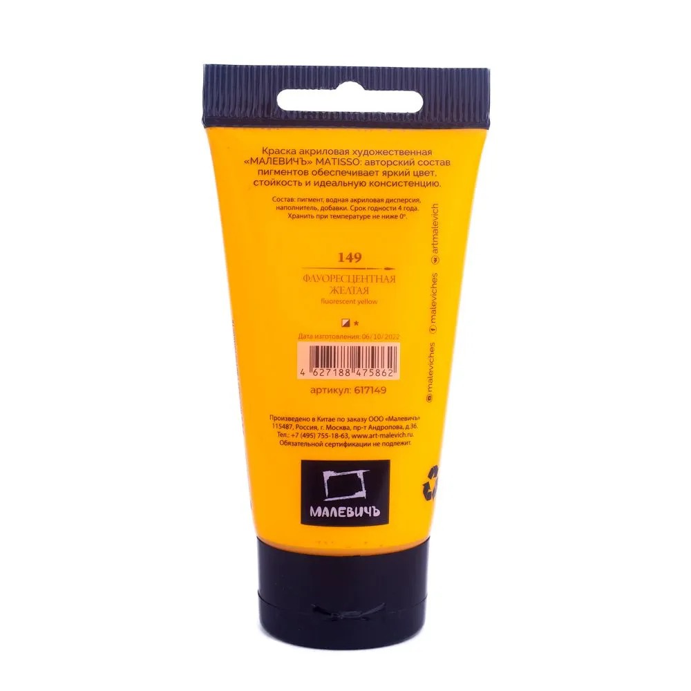 Акриловая краска Малевичъ Matisso, желтая флуоресцентная, 60 мл