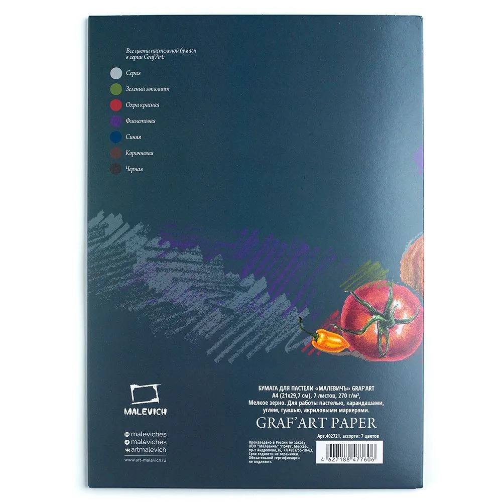 Пастельная бумага «Малевичъ» выполнена из 100% альфа целлюлозы, плотность бумаги 270 гр/м2. Листы бумаги окрашены в массе, позволяют подобрать наиболее удачный фон и добавить глубины вашим произведениям. Бумага двусторонняя, с одной стороны мелкозернистая поверхность отлично держит пигмент и подходит для различных видов графических материалов, с другой — гладкая, подойдет для рисования карандашами, гелевыми ручками и другими инструментами для графики