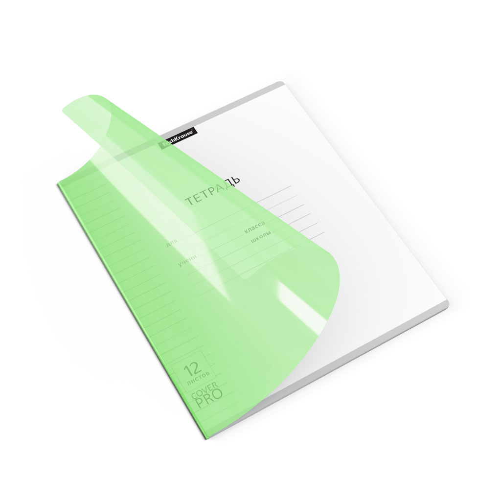 Тетрадь школьная ученическая с пластиковой обложкой на скобе ErichKrause® Классика CoverPrо Neon, зеленый, А5+, 12 листов, линейка