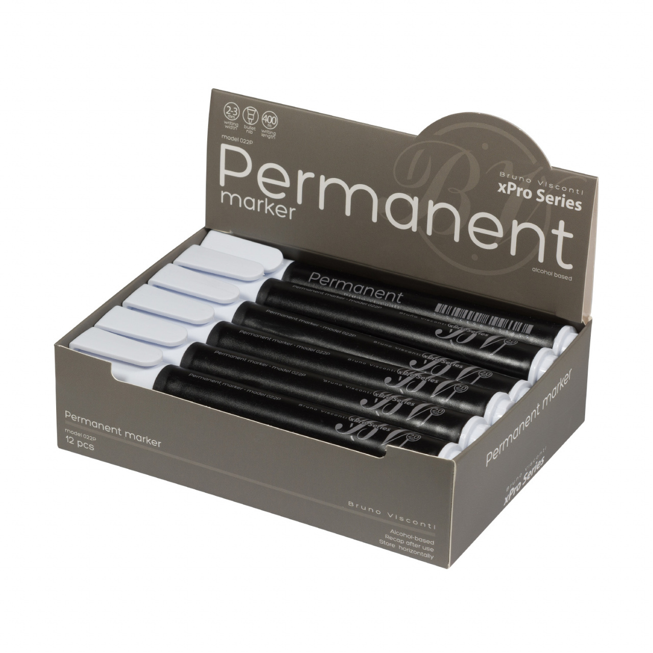 Перманентный маркер "PROFYMARK" от Bruno Visconti с особой формулой чернил предназначен для письма на различных поверхностях, включая бумагу, картон, стекло, металл, пластмассу.