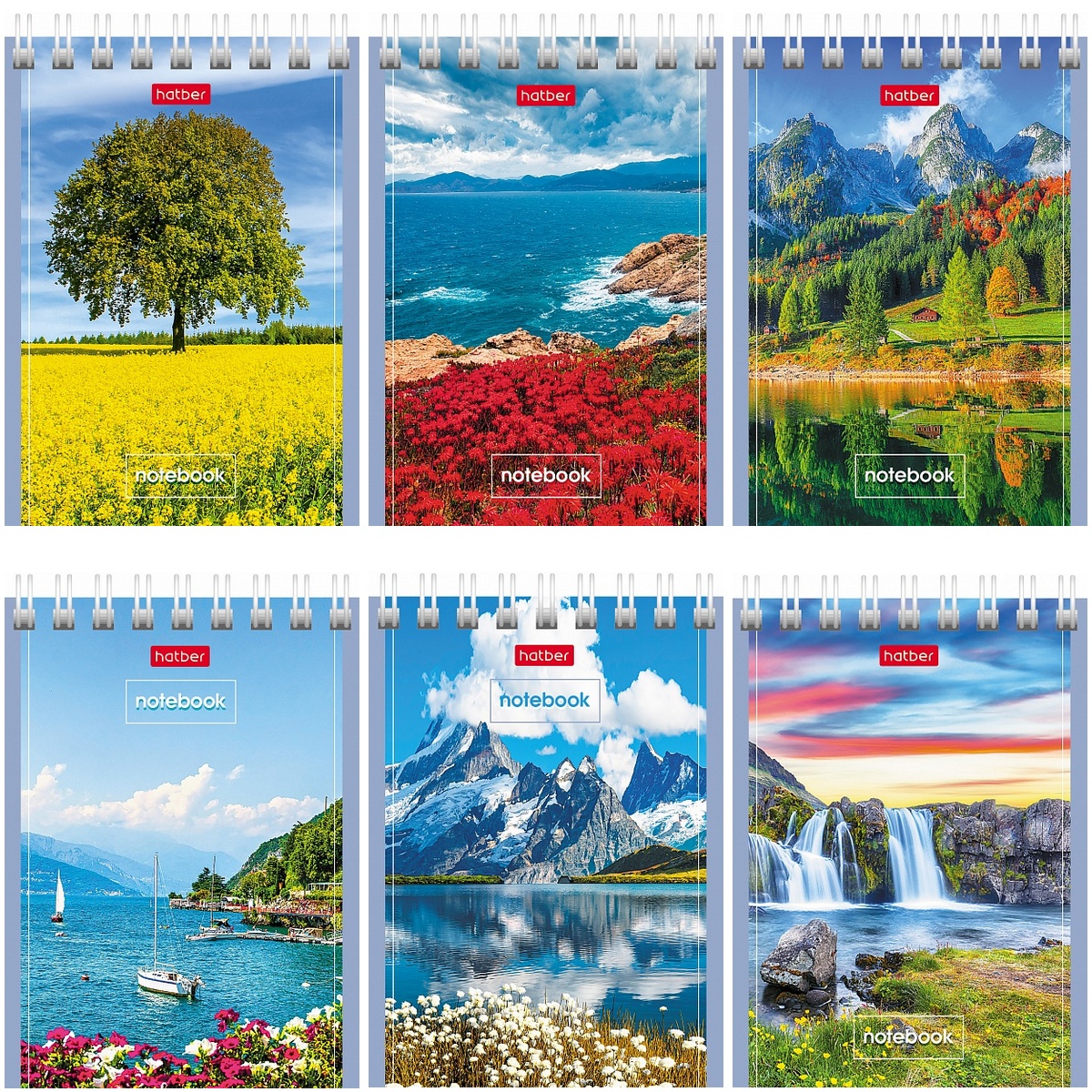 Блокнот 40л А7ф клетка 65г/кв.м Обл. мел.картон на гребне серия -Великолепные пейзажи-