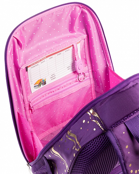 Ранец серии Ergonomic light с мягкими боковинами предназначен для детей младшего и среднего школьного возраста. Размер 38х29х12,5 см. Объем ранца 14л. Вес - менее 750 гр. Выполнен из современного пористого EVA материала с покрытием из высококачественного полиэстера. Содержимое такого ранца всегда будет в полном порядке, благодаря надежному корпусу с мягкими боковинами. Анатомическая вентилируемая спинка, лямки, регулируемые по высоте, в зависимости от роста ребенка, уплотненная мягкая ручка и петля для подвешивания делают его удобным. Одно вместительное отделение на молнии с плавающей перегородкой на липучке. Внутри расположен функциональный органайзер, включающий в себя карточку - расписание уроков, два кармана на молнии для мелочей и мобильного телефона, отстегивающийся карабин для ключей. Для удобства на задней спинке предусмотрен потайной карман