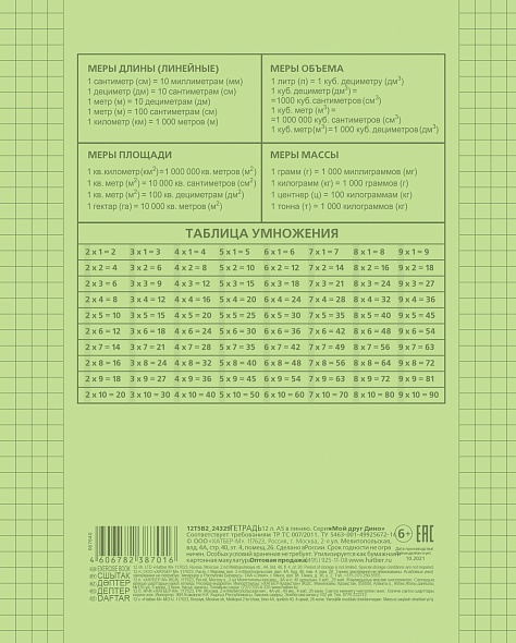 Тетрадь 12л А5ф клетка 65г/кв.м Пластиковая обложка на скобе Зеленая