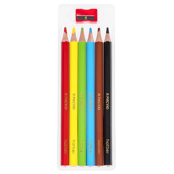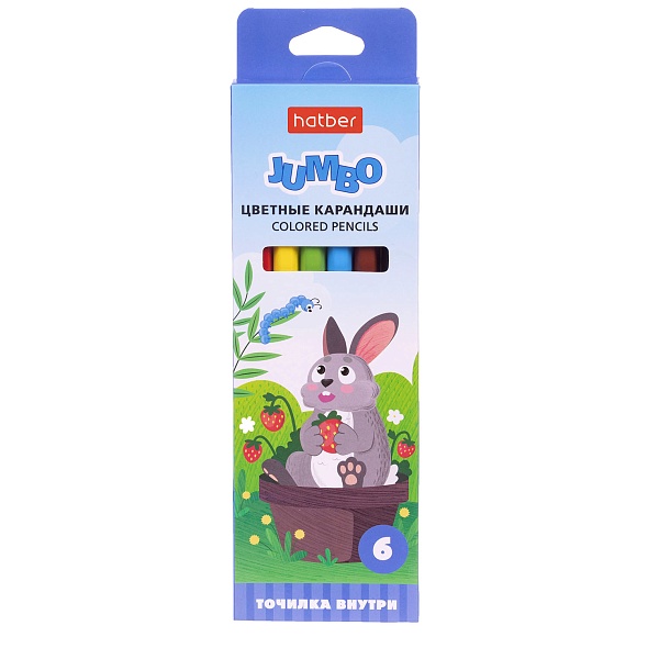 Карандаши цветные 6 цветов Hatber Jumbo с утолщенным шестигранным корпусом и насыщенной цветовой гаммой. Прочный неломкий грифель толщиной 4мм имеет превосходную мягкость, оставляет плотный выразительный след на поверхности бумаги. Набор поставляется в картонной упаковке с вырубным окошком и европодвесом. Карандаши внутри коробки уложены в удобный пластиковый поддон, в котором также находится пластиковая точилка, подходящая по размеру для затачивания утолщенного корпуса.