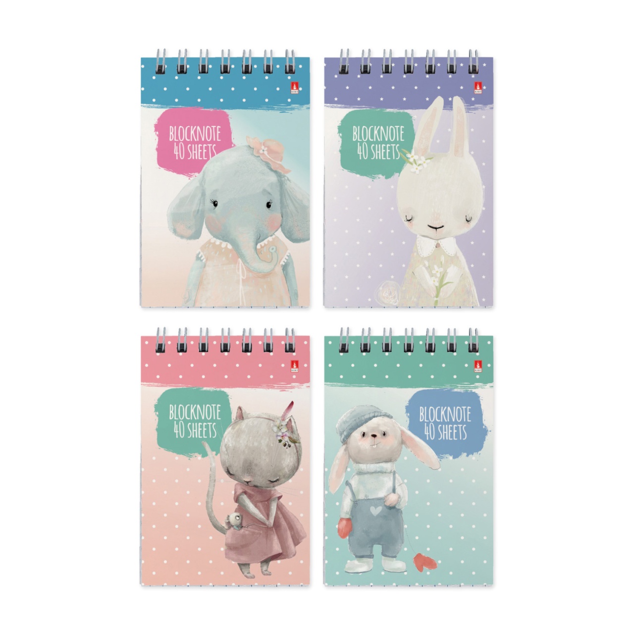 Блокнот А7 АЛЬТ 40л. спираль "Kids" клетка, обл. ламин. картон, 68х101 мм., 5в.