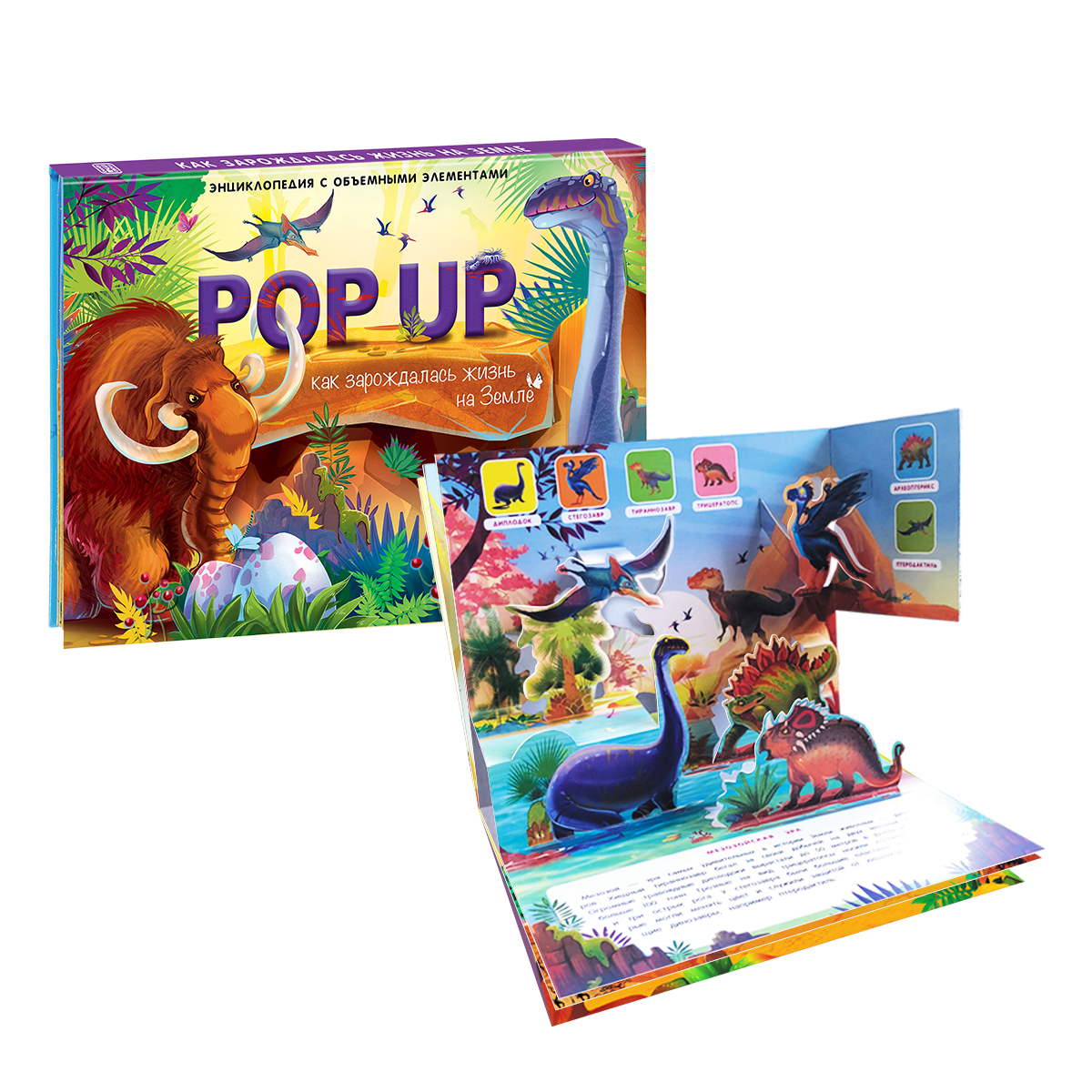 Все тайны и загадки Древнего мира раскроет Поп-ап энциклопедия "Динозавры" с красочными иллюстрациями и объемными элементами.