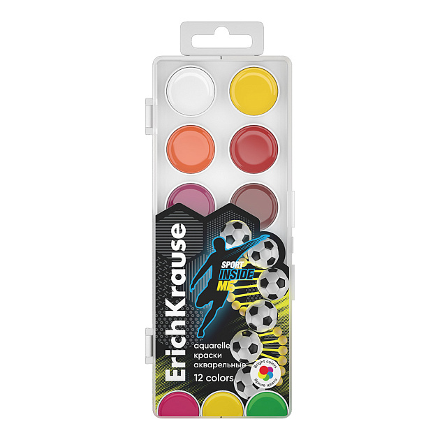 Краски акварельные ErichKrause Sport DNA 12 цветов (в пластиковой коробке с европодвесом)
