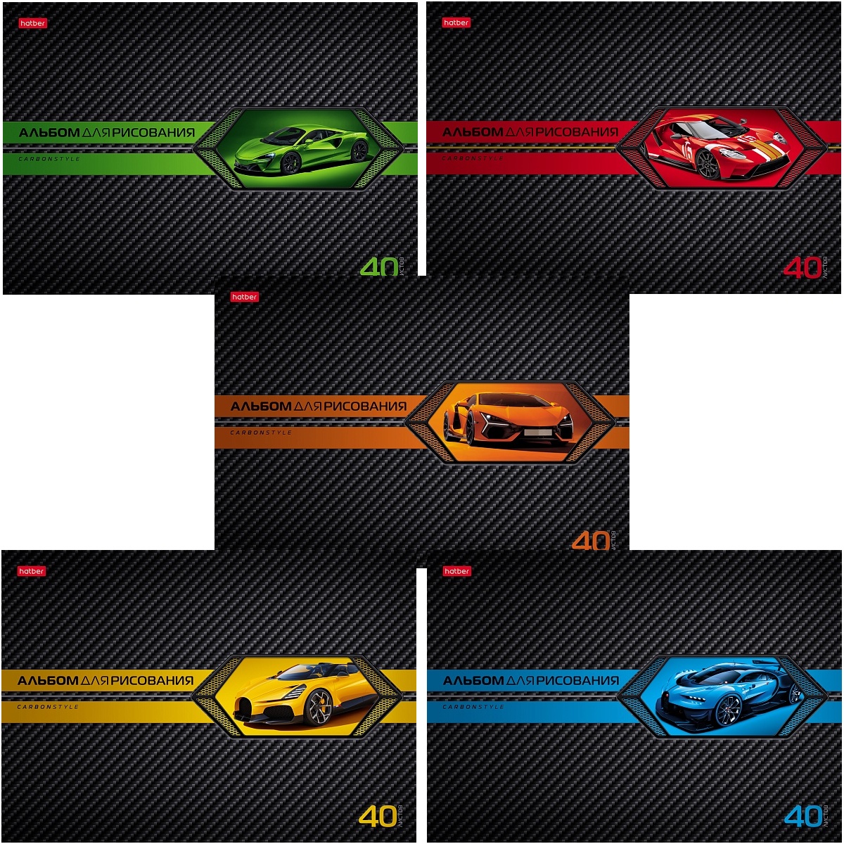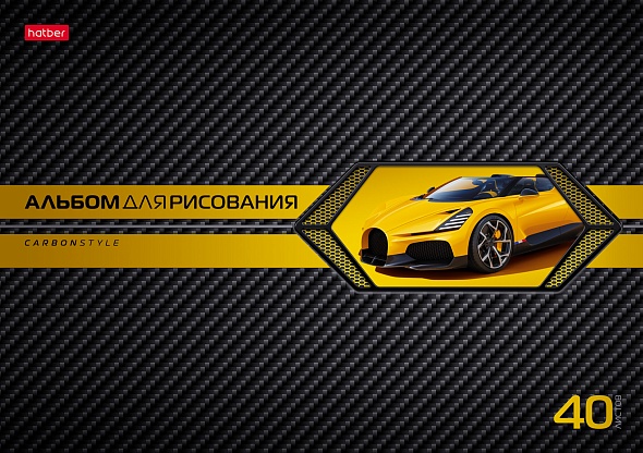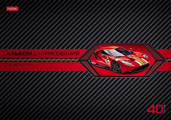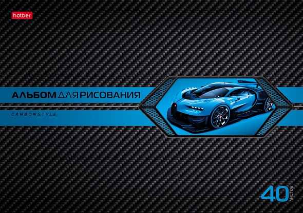 АЛЬБОМ для рисования 40л А4ф на скобе выб лак серия -AutoCarbon-