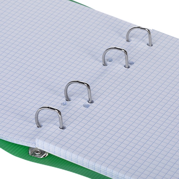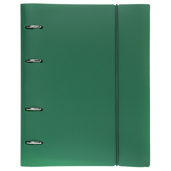 Тетрадь 120л А5ф на 4-х кольцах Пластиковая обложка с высечкой под кольца на резинке VELVET Зеленая в индив.упак.