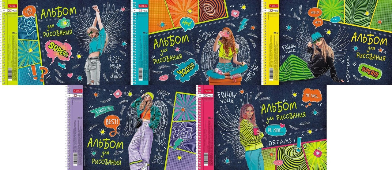 АЛЬБОМ для рисования 32л А4ф перфорация на отрыв на спирали мат.ламин. 3D фольга 5 диз.в блоке серия -Street Style-