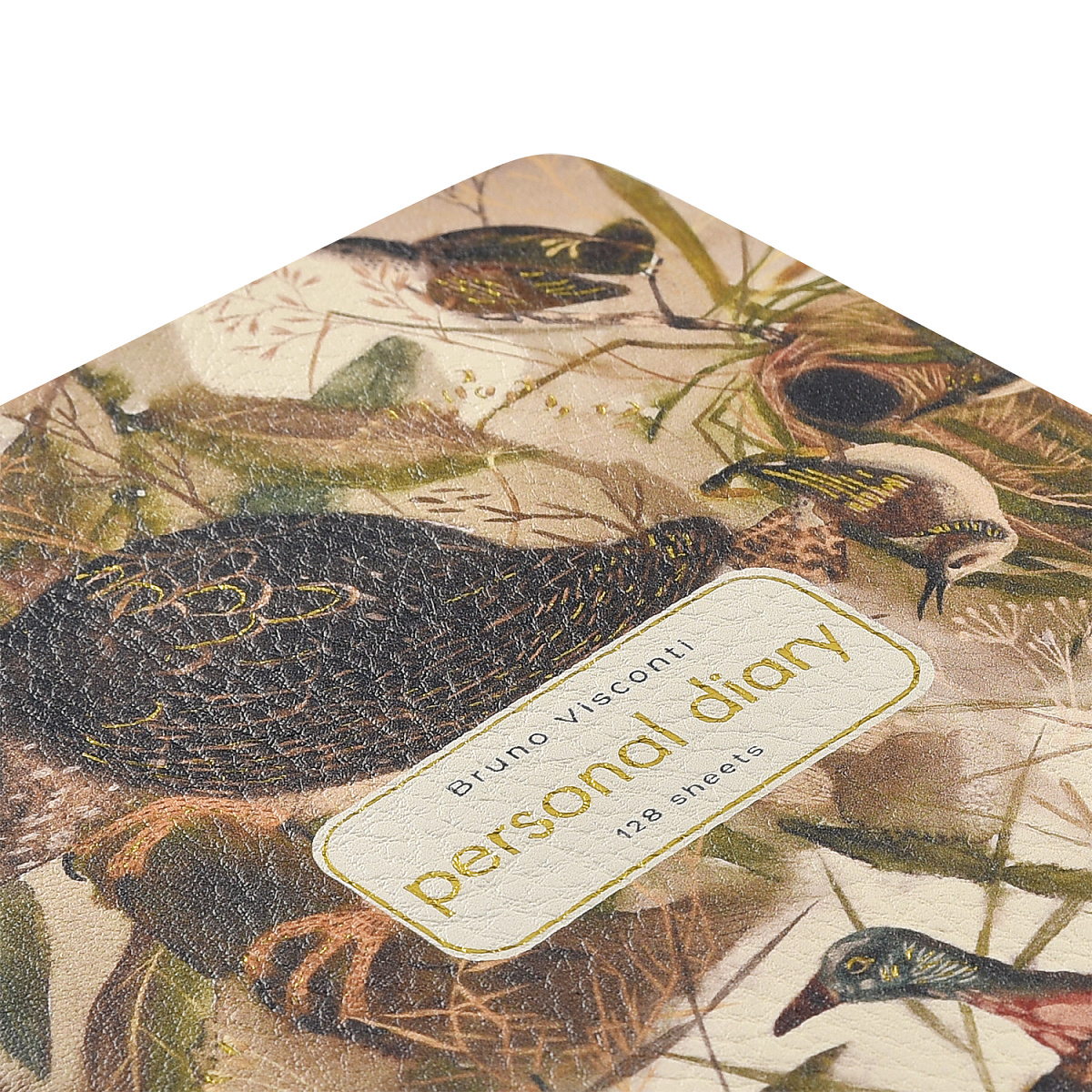 Внутренний блок изготовлен из бежевой бумаги плотностью 80 г/кв.м и содержит 128 листов в серую линейку.