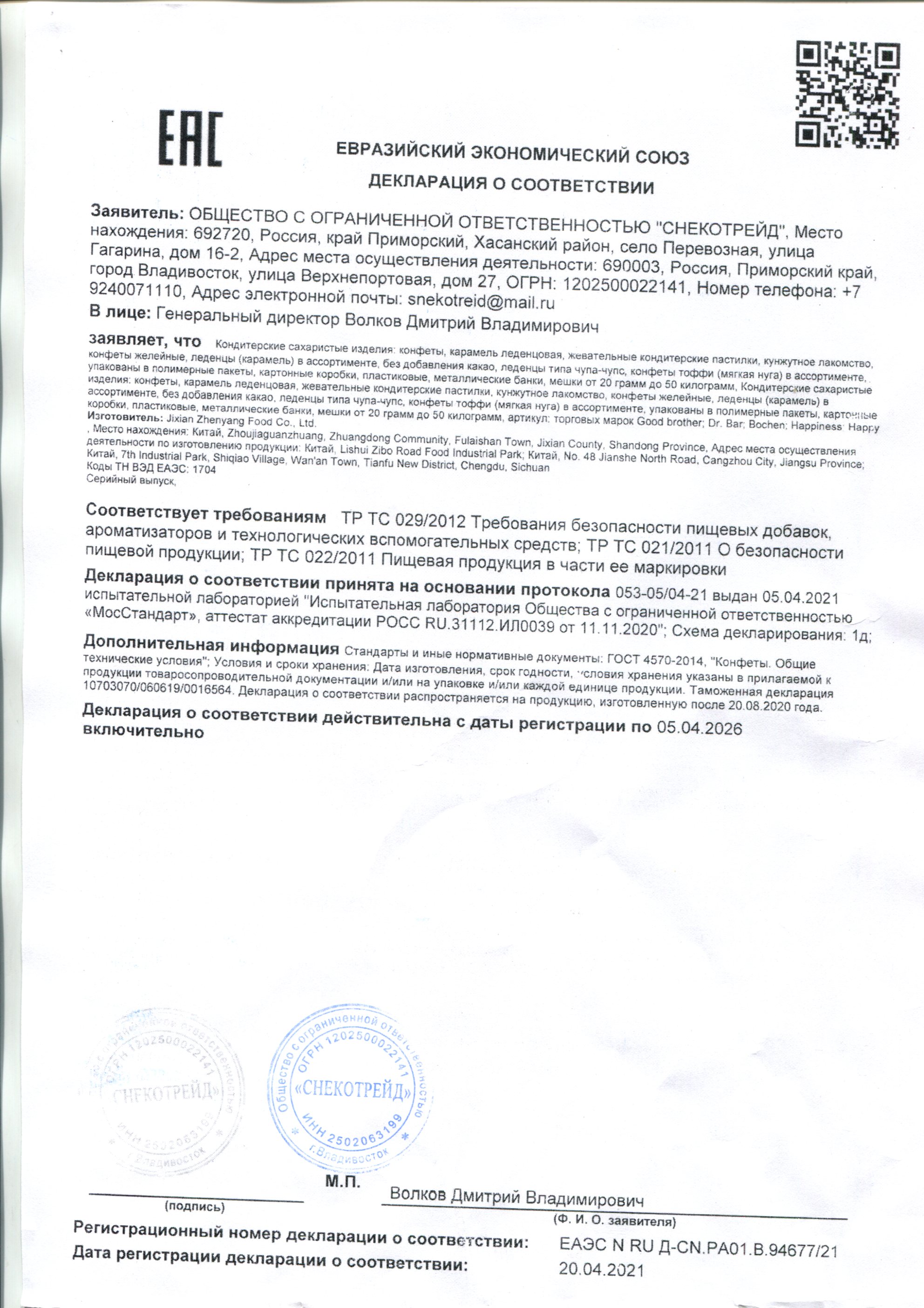 | Описание для этикетки: | Мармелад Состав: сироп глюкозы, сахар, крахмал, желатин, пищевые добавки (лимонная кислота Е330, яблочная кислота Е296), ароматизатор апельсин, пищевые красители (E100). Пищевая ценность на 100гр.: белки - 0 г., жиры - 0 г., углеводы - 83,1 г. Энергетическая ценность на 100 гр.: кДж 1413 /кКал 337. Срок годности: 12 мес.Масса нетто: 30 гр. Изготовитель: Hongtai Kee Food Co., Ltd. Китай, Qiqiao New District, Wenli, Anbu,Chaoan Disctrict, Chaozhou City. Импортер: ООО «Снекотрейд» Адрес: Россия Приморский край г. Владивосток, ул. Верхнепортовая, 27 Хранить в сухом и прохладном месте при температуре от 0 °С до +20 °С Дата изготовления: см.на упаковке Страна изготовления: Китай |