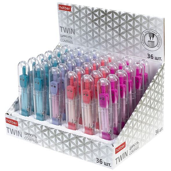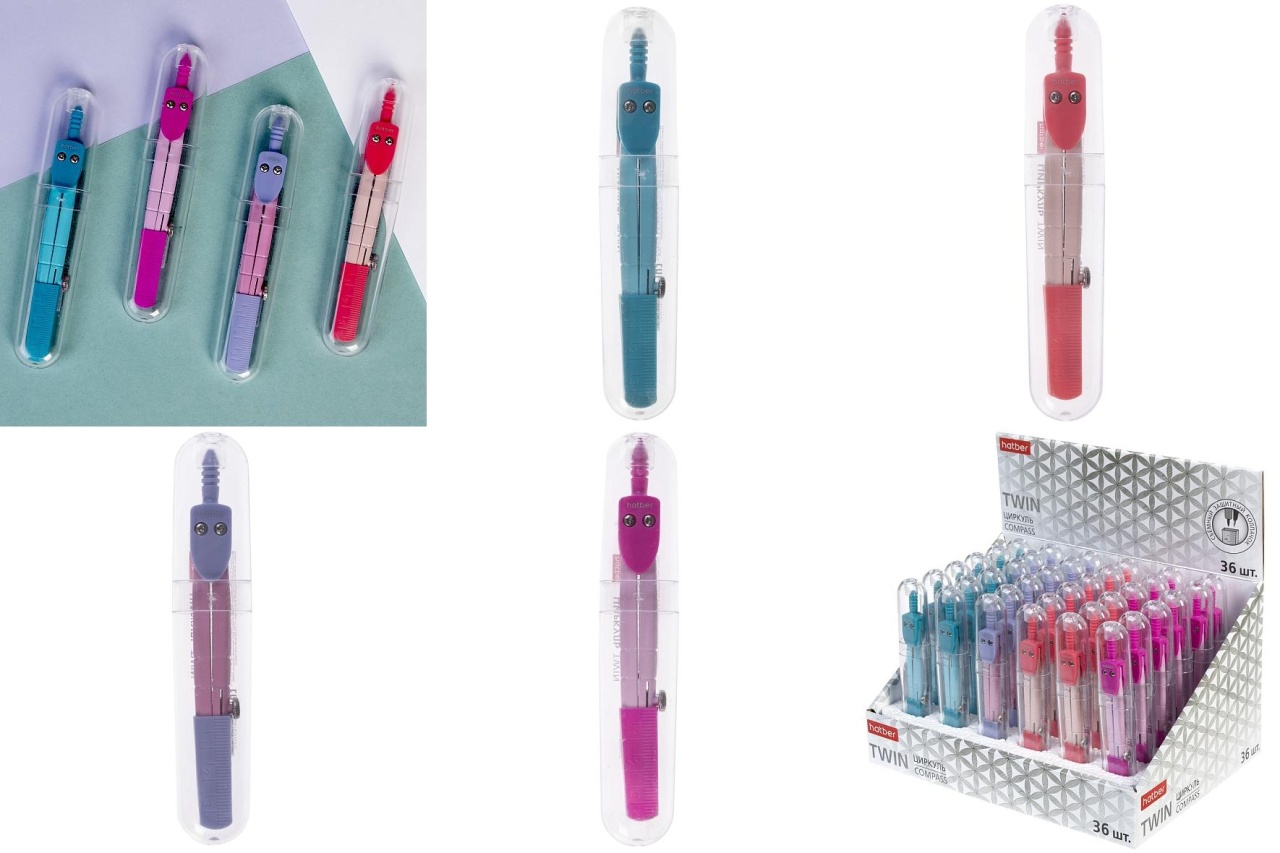 Циркуль ХАТБЕР "Twin" 12см., с защитным пластик.колпачком, футляр, ассорти