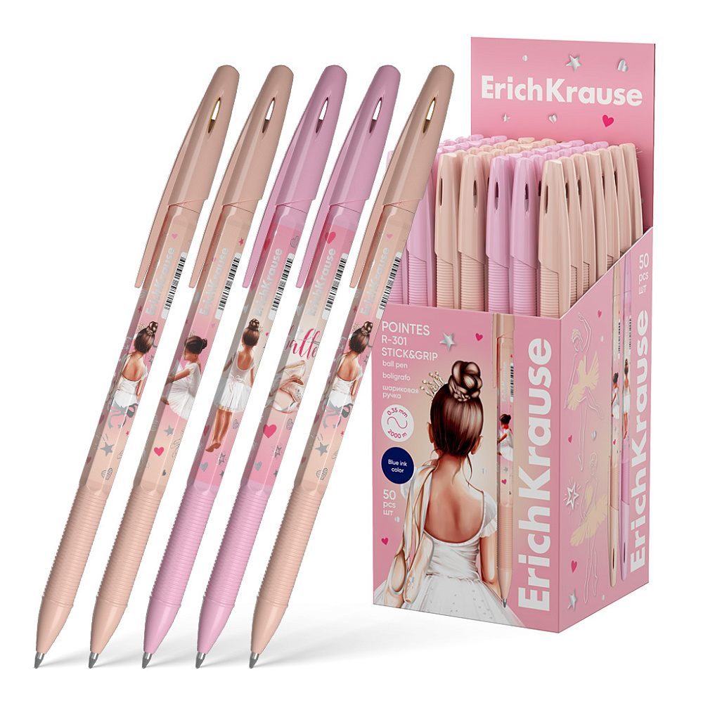Ручка шариковая ERICH KRAUSE R-301 Pointes Stick and Grip синяя, 0,7мм., карт.кор.