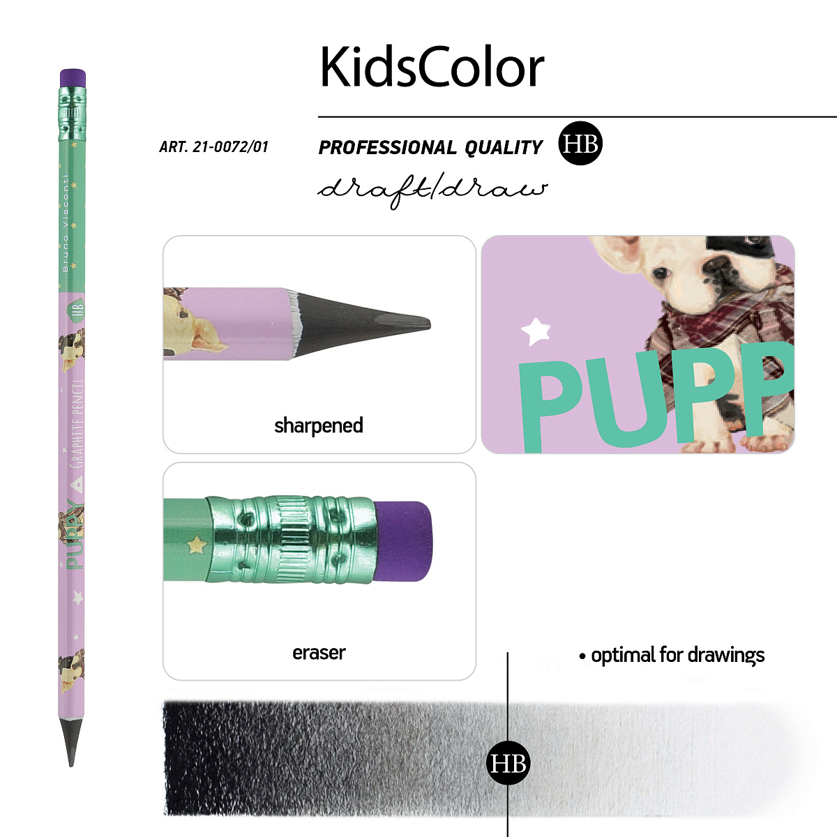 Карандаши KIDS COLOR от Bruno Visconti – для тех, кто ценит эргономичность, качество и выразительность. Корпус карандаша пластиковый и поэтому обладает большей плотностью и прилеганию к стержню - он не бьётся даже при падении, хорошо затачивается.