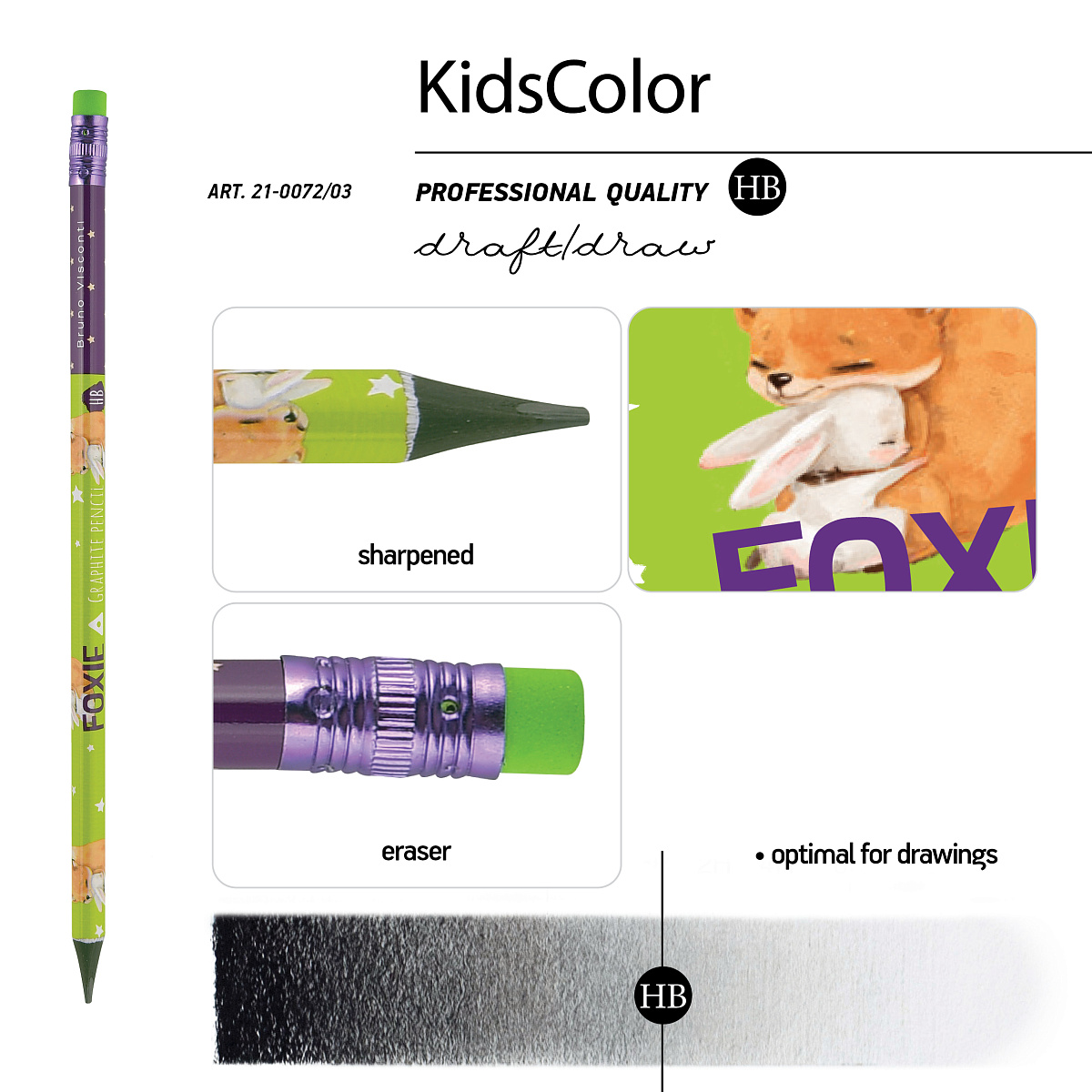 КАРАНДАШ ЧЕРНОГРАФИТОВЫЙ С ЛАСТИКОМ "Kids Color. Лиса" HB (пластиковый корпус)