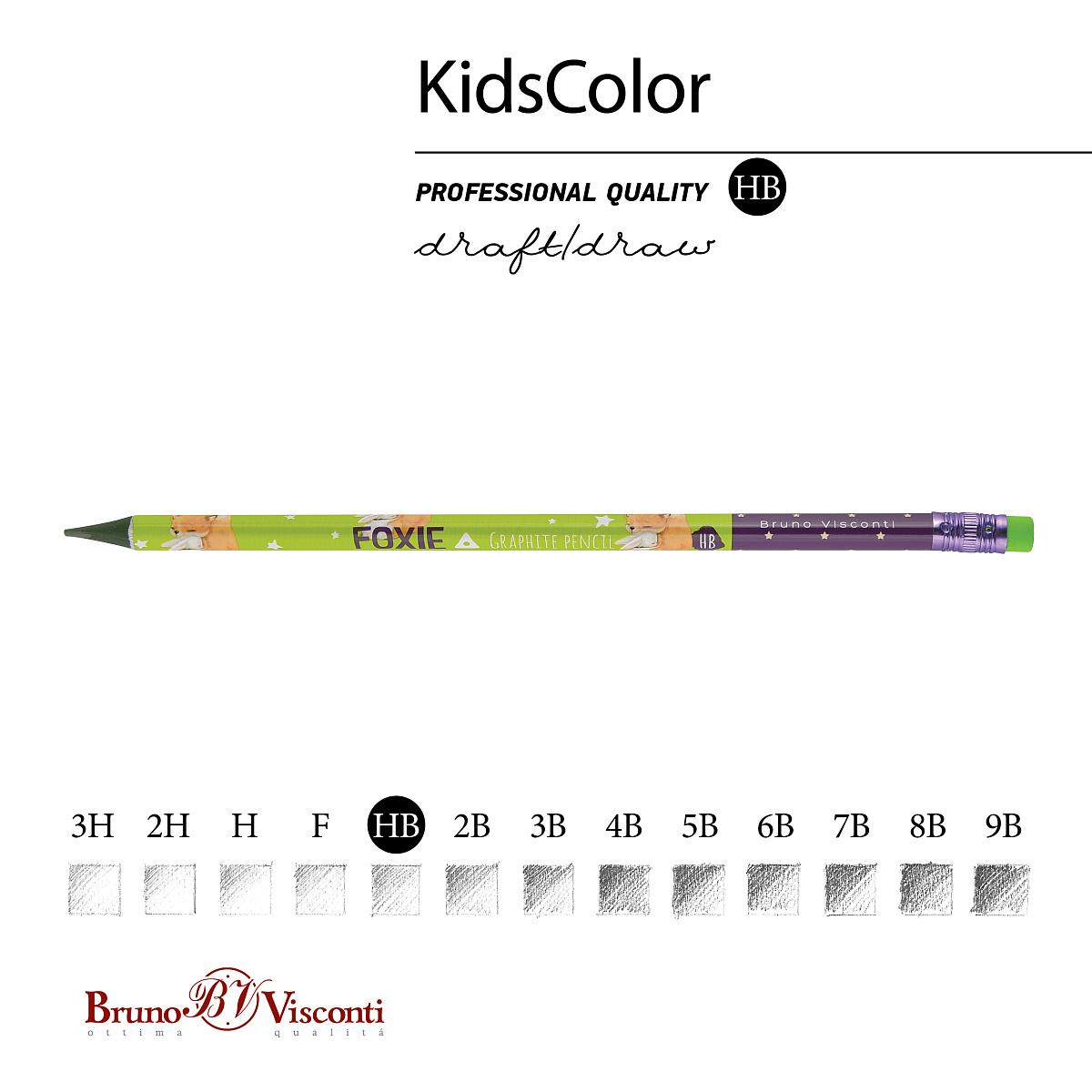 Карандаши KIDS COLOR от Bruno Visconti – для тех, кто ценит эргономичность, качество и выразительность. Корпус карандаша пластиковый и поэтому обладает большей плотностью и прилеганию к стержню - он не бьётся даже при падении, хорошо затачивается.