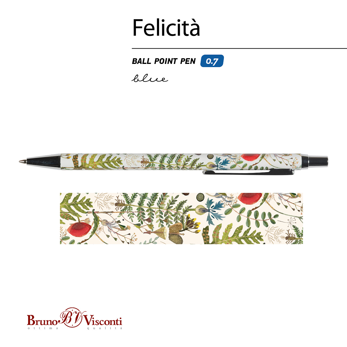 РУЧКА "Felicita. ЛУГОВЫЕ ТРАВЫ" ШАРИКОВАЯ МЕТАЛЛИЧЕСКАЯ, 0,7 ММ, СИНЯЯ