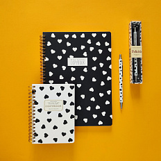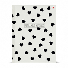 Ежедневник Bruno Visconti A5 "Black and White.Сердечки" недат, иск.кожа, инт.об.ляссе,скр.углы,128л,