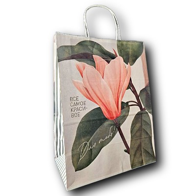 Пакет бумажный 100 г/м2 ПЗБМ крученые ручки 350*260*150 Цветы 2