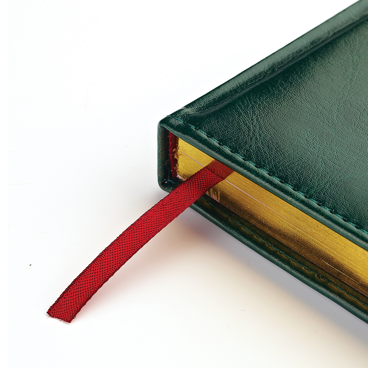 Благородство и статусность придают ежедневнику отстрочка по периметру в тон, скругленные углы, закладка-ляссе бордового цвета, золотой срез.