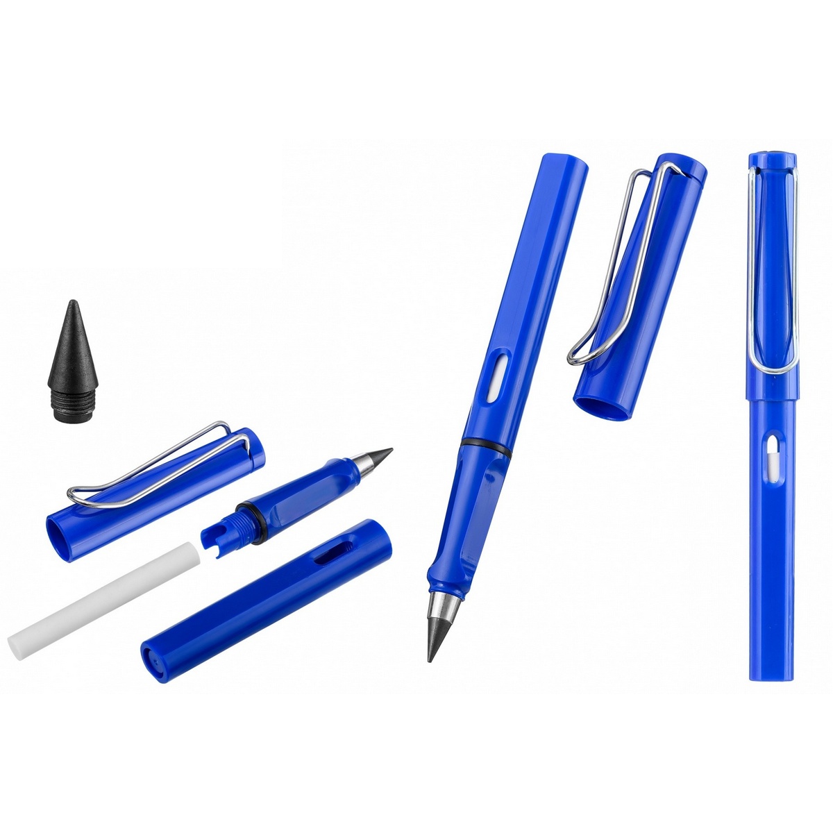 Вечный карандаш с ластиком: функциональность вечного карандаша идентична обычному чернографитному карандашу, не требует заточки, легко стирается; яркий цветной пластиковый корпус (13,7 см) , внутри корпуса ластик, колпачок с прищепкой для бумаг,