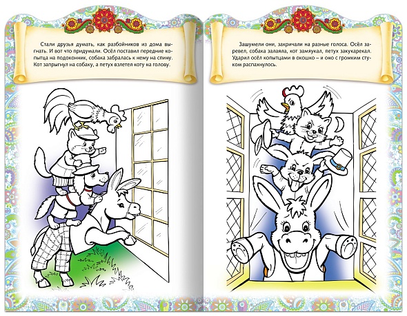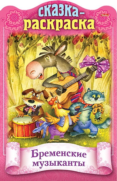 Книжка-раскраска ХАТБЕР А4 "Сказки детям.Бременские музыканты" 8л., скоба, цв.блок, вырубка, 207х320