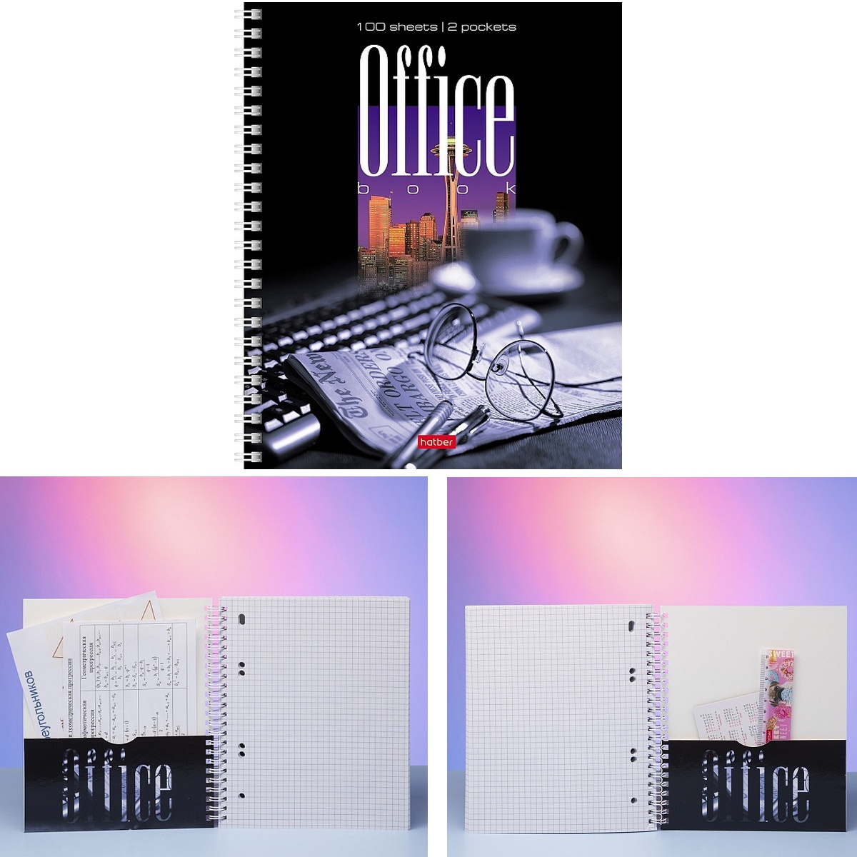 Тетрадь 100л А5ф обложка с карманом УФ-лак клетка Многоуров.перфорация на гребне-Офис-очки-
