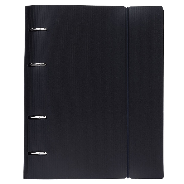 Тетрадь 120л А5ф на 4-х кольцах Пластиковая обложка с высечкой под кольца на резинке VELVET Черная в индив.упак.