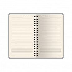 Внутренний блок произведен из бежевой бумаги плотностью 80 г/кв.м и содержит 80 листов в серую линейку.