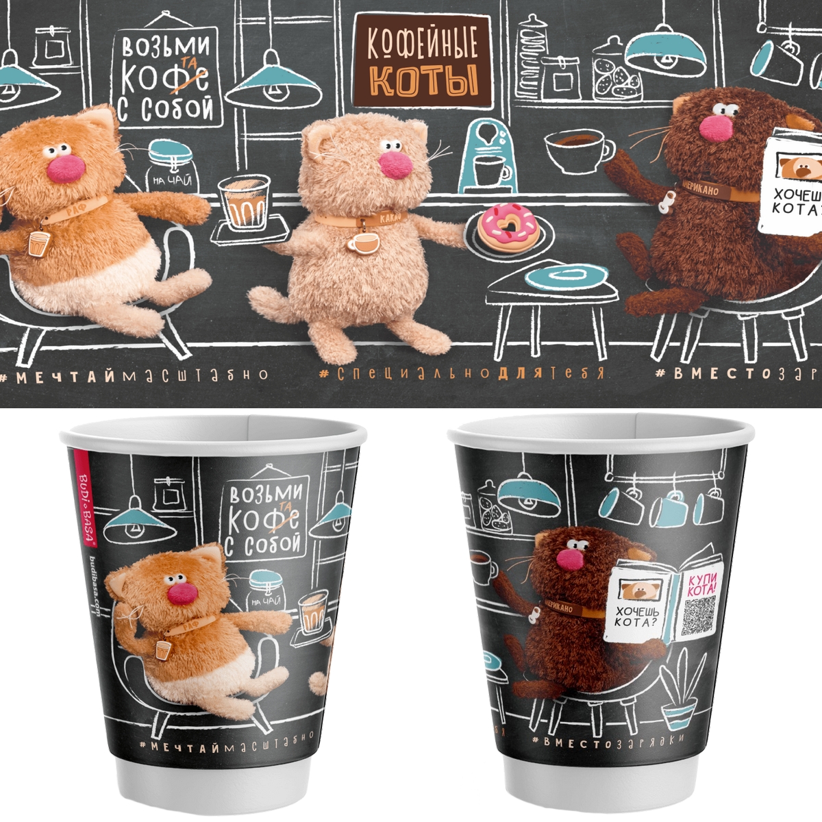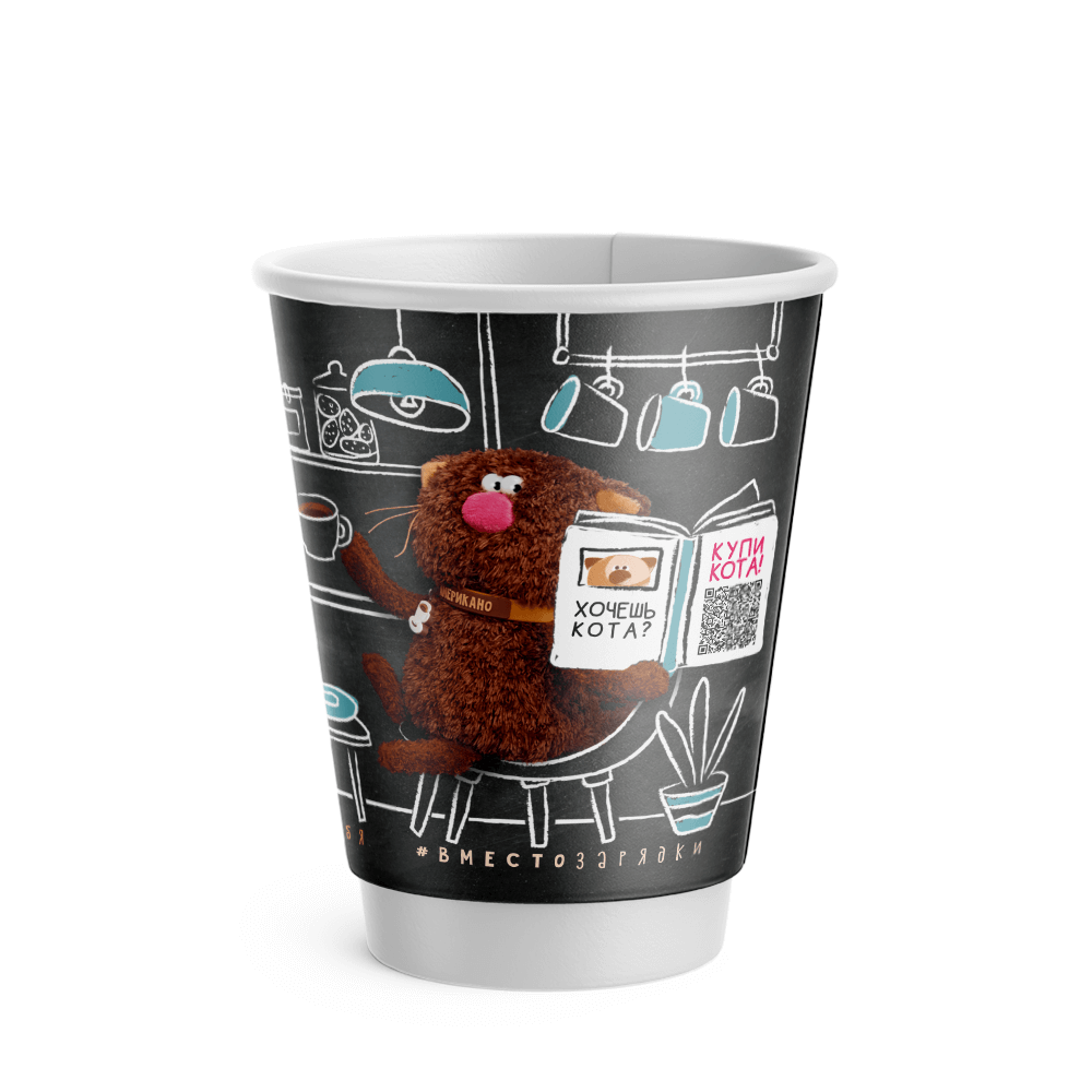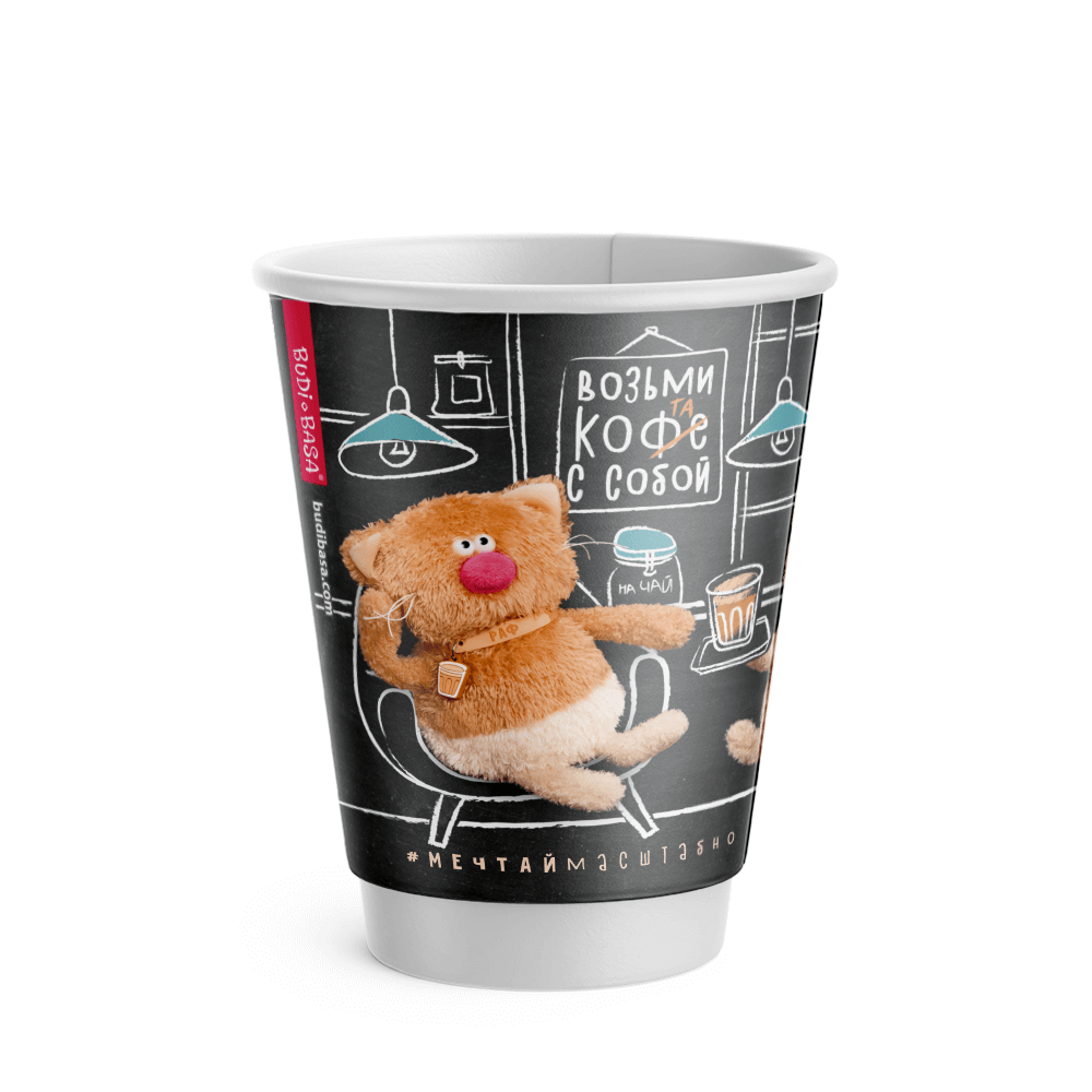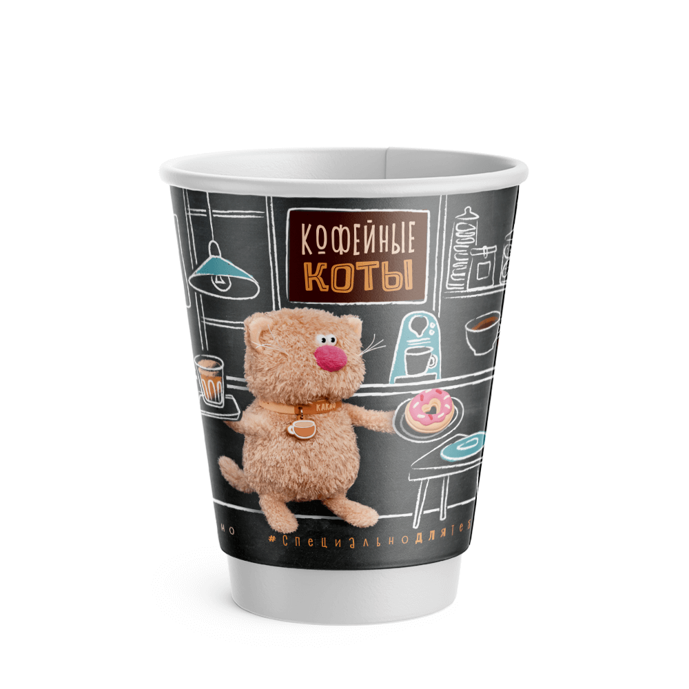 Стакан двухслойный "Кофейные коты" 350 мл., бумажный