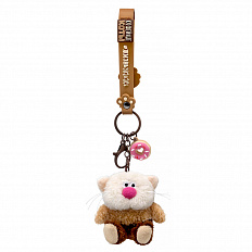 Шикарный кот Фраппе из тактильно приятного эко меха в трех оттенках, цвета горького шоколада, цвета золотистой карамели и белоснежного цвета молочной пенки. На коте объемная шапочка в виде пирожного с ягодкой сверху. Шапочка сшита из мягкого софта цвета шоколада и цвета розового крема, сверху украшена вышивкой. Шапочка крепится под шеей на липучку.