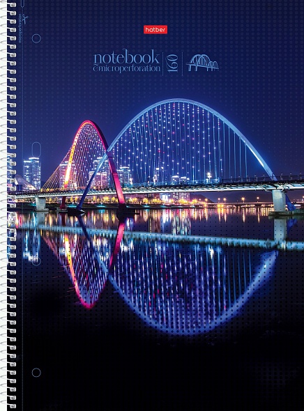 Тетрадь с твердой обложкой 160л А4ф на спирали 4 цв. разделителя Многоуров.перфорация глянц. ламин. -Огни ночного города- в индив.упак.