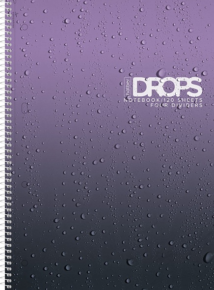 Тетрадь с твердой обложкой 120л А4ф на спирали 4 цв. разделителя Многоуров.перфорация глянц. ламин.-Drops- в индив.упак.