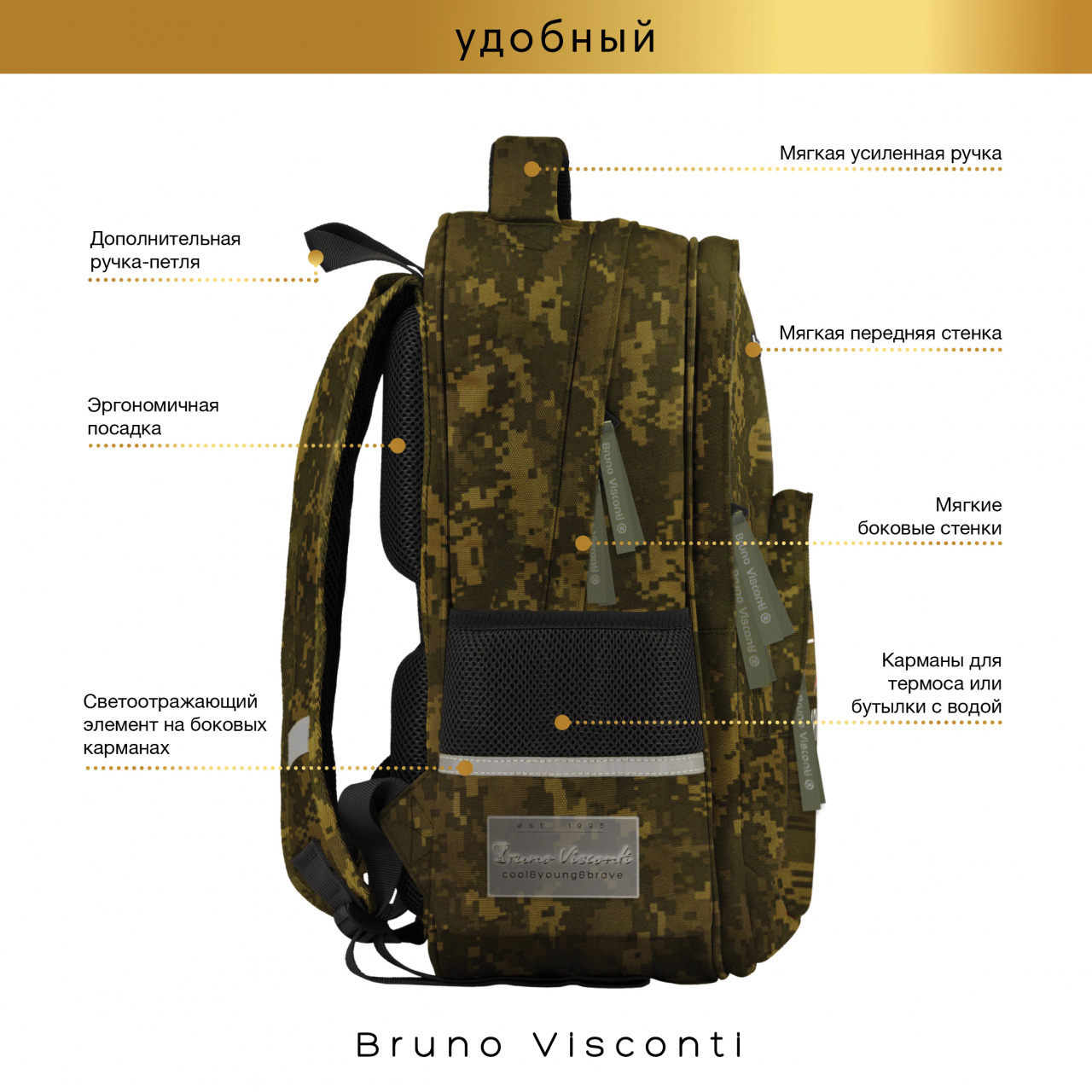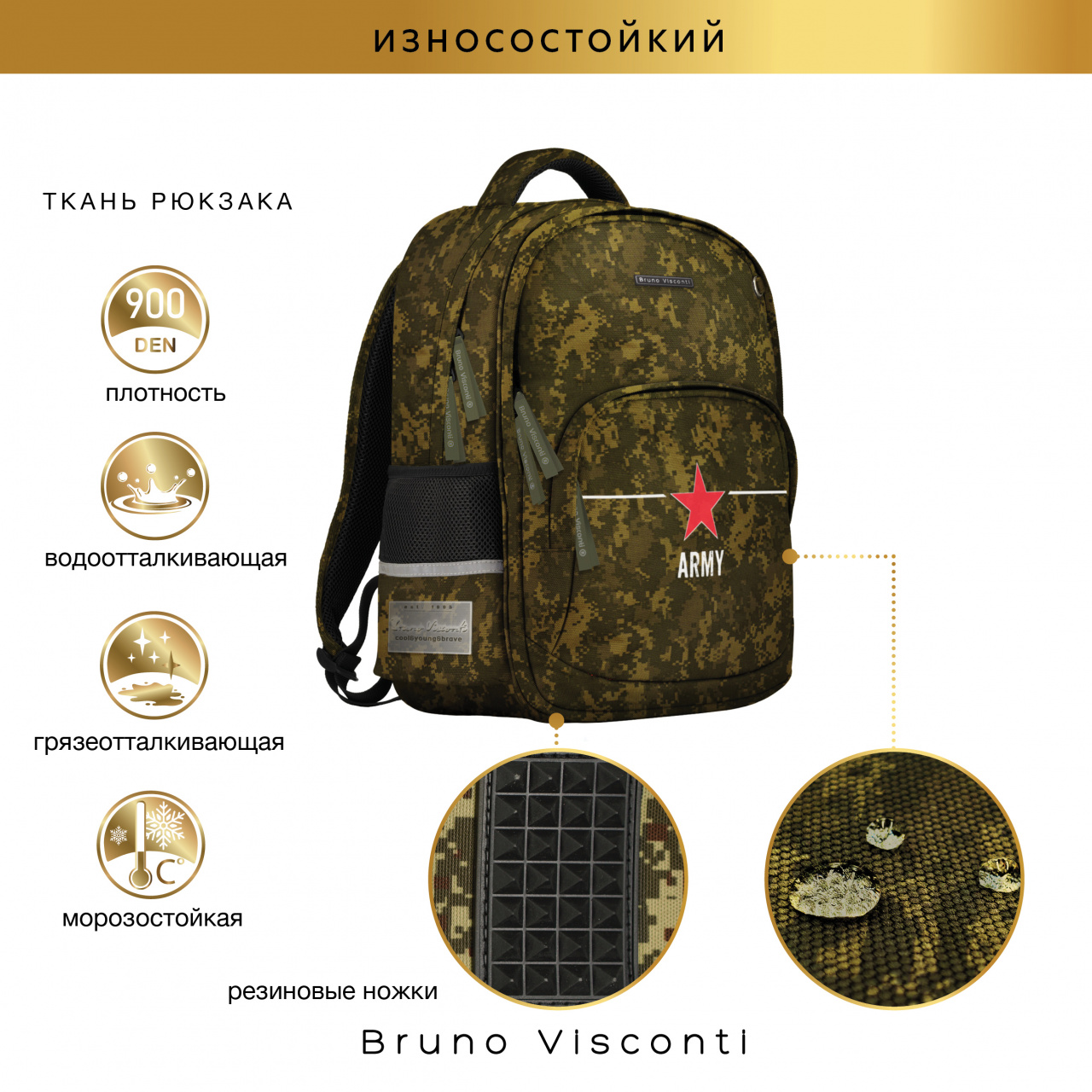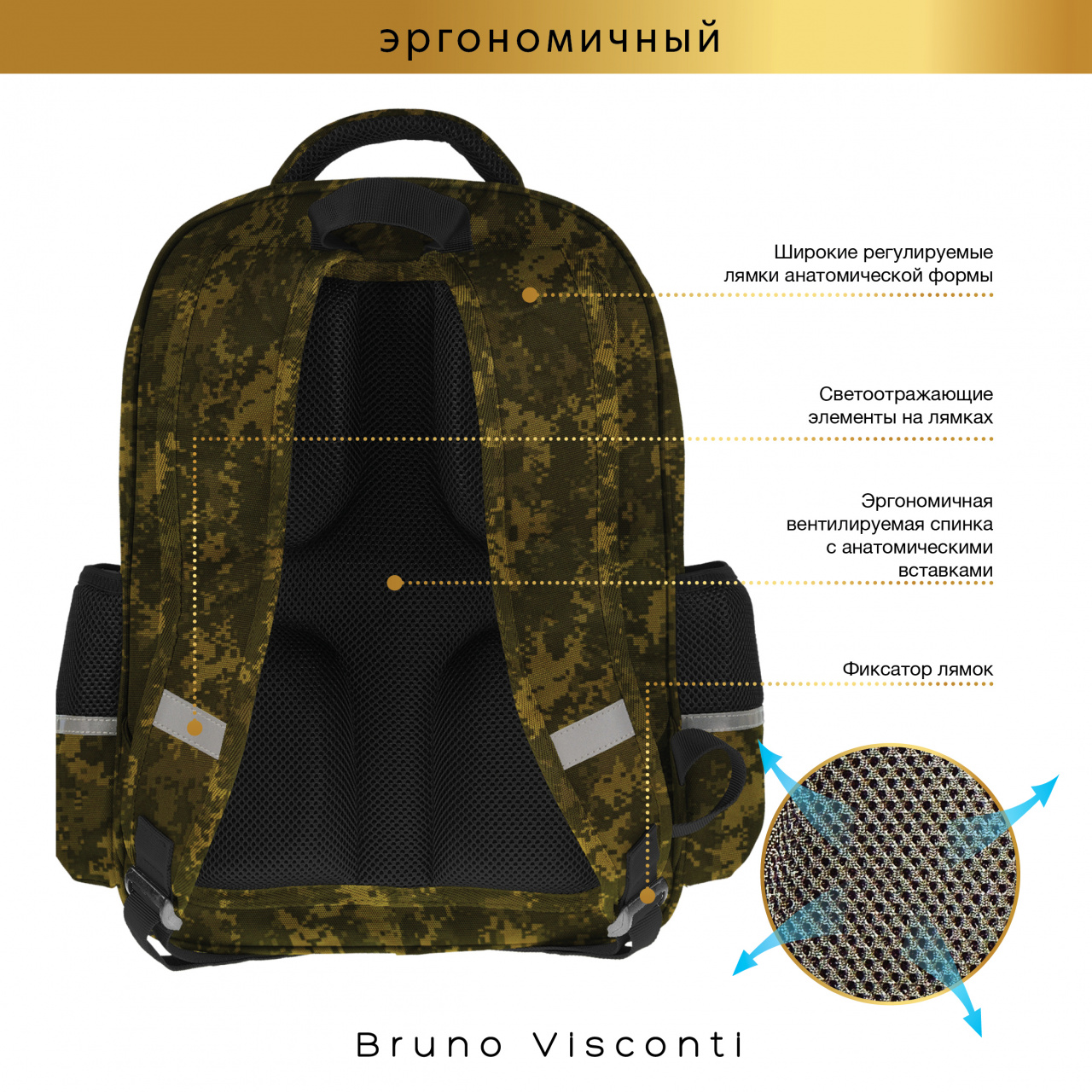 РЮКЗАК КАМУФЛЯЖ С ЭРГОНОМИЧНОЙ СПИНКОЙ "МИЛИТАРИ.ARMY"