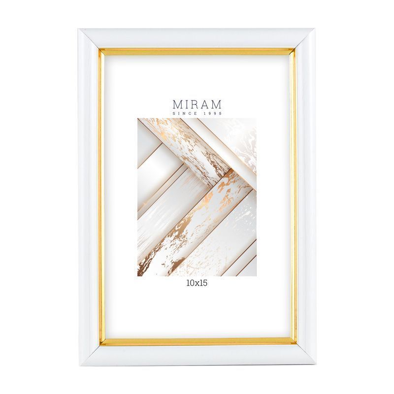 Рамка д/фото Miram 10x15см., полистирол, белая с золотом, пластиковое стекло