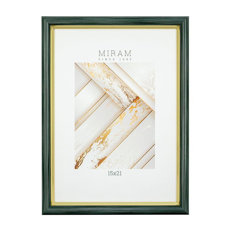Рамка д/фото Miram 15x21см., полистирол, зеленая с золотом, пластиковое стекло