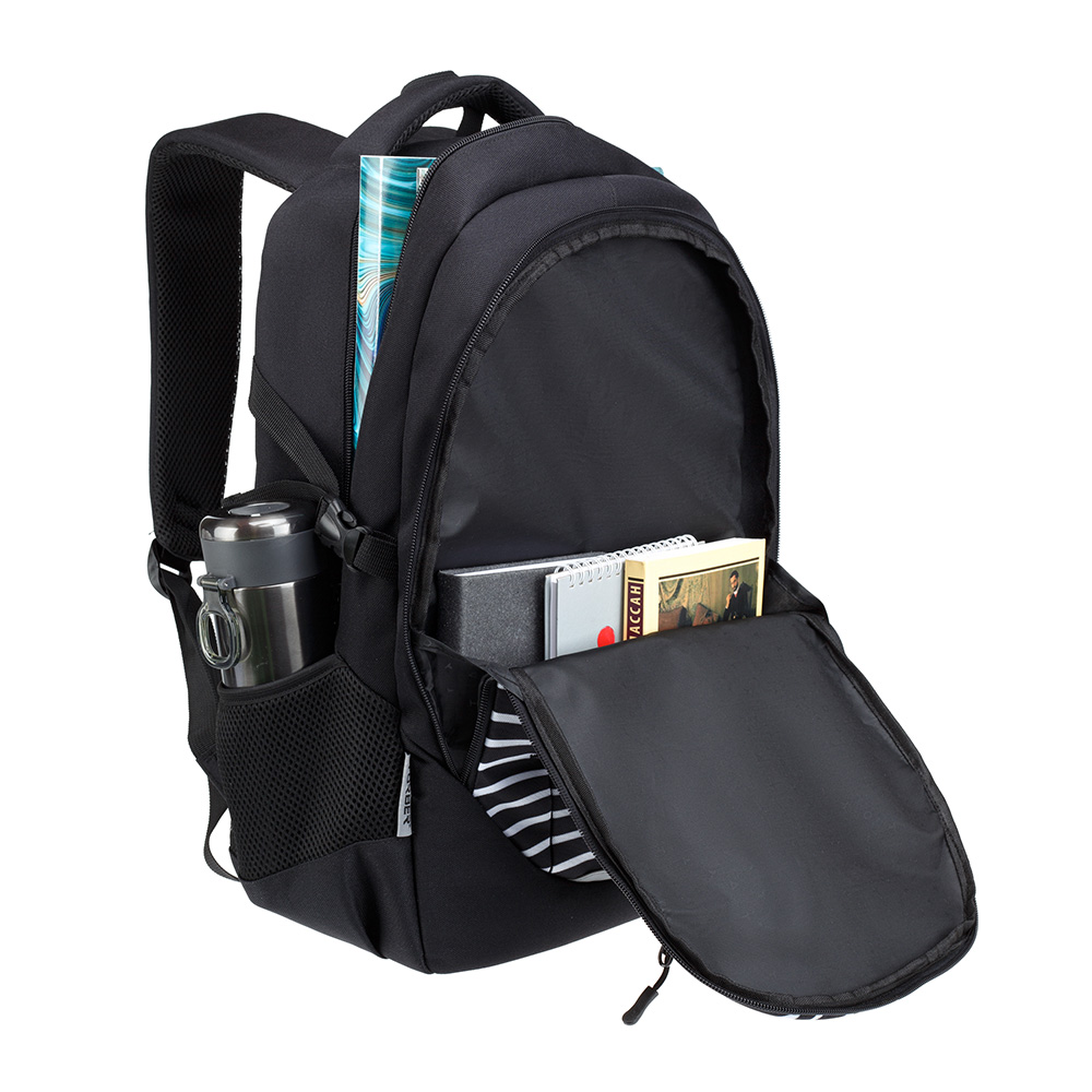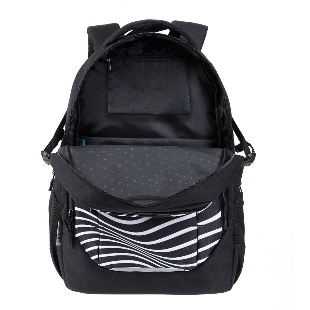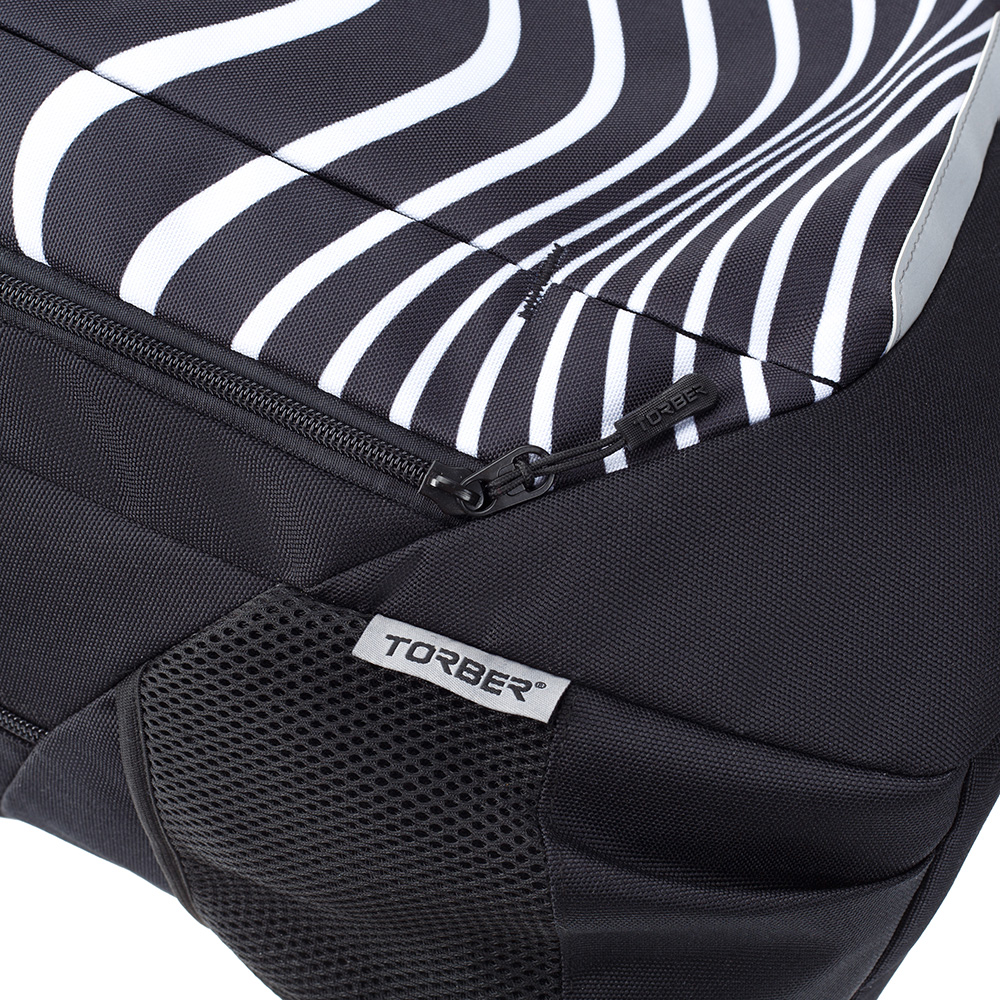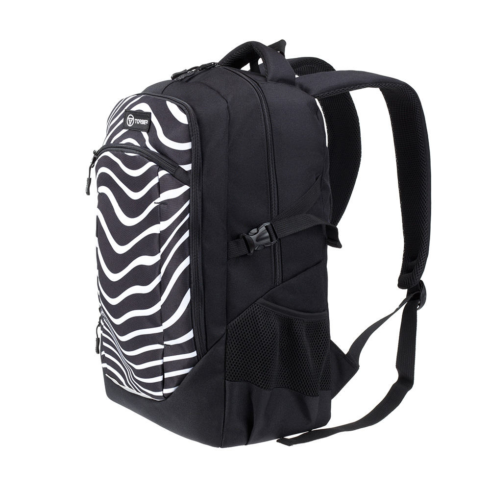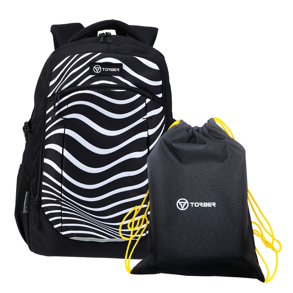 Рюкзак TORBER CLASS X, черный с принтом "Зебра", 46 x 32 x 18 см+ Мешок для сменной обуви в подарок