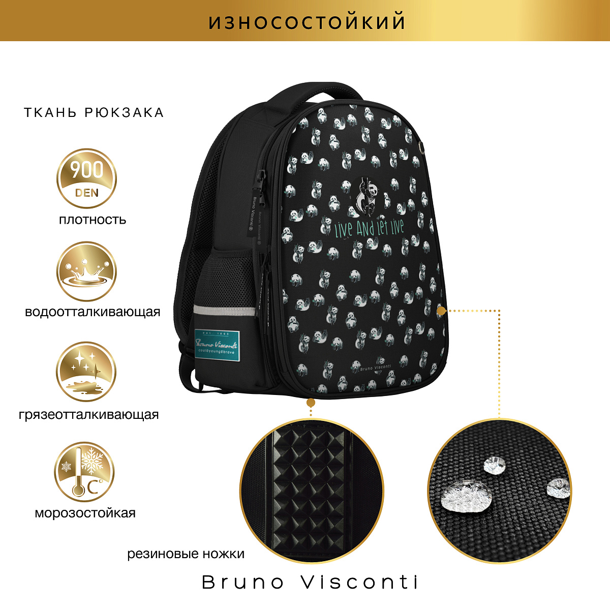 Рюкзак школьный «ПАНДЫ МИЛАШКИ» ТМ Bruno Visconti облегченный, с эргономичной спинкой.