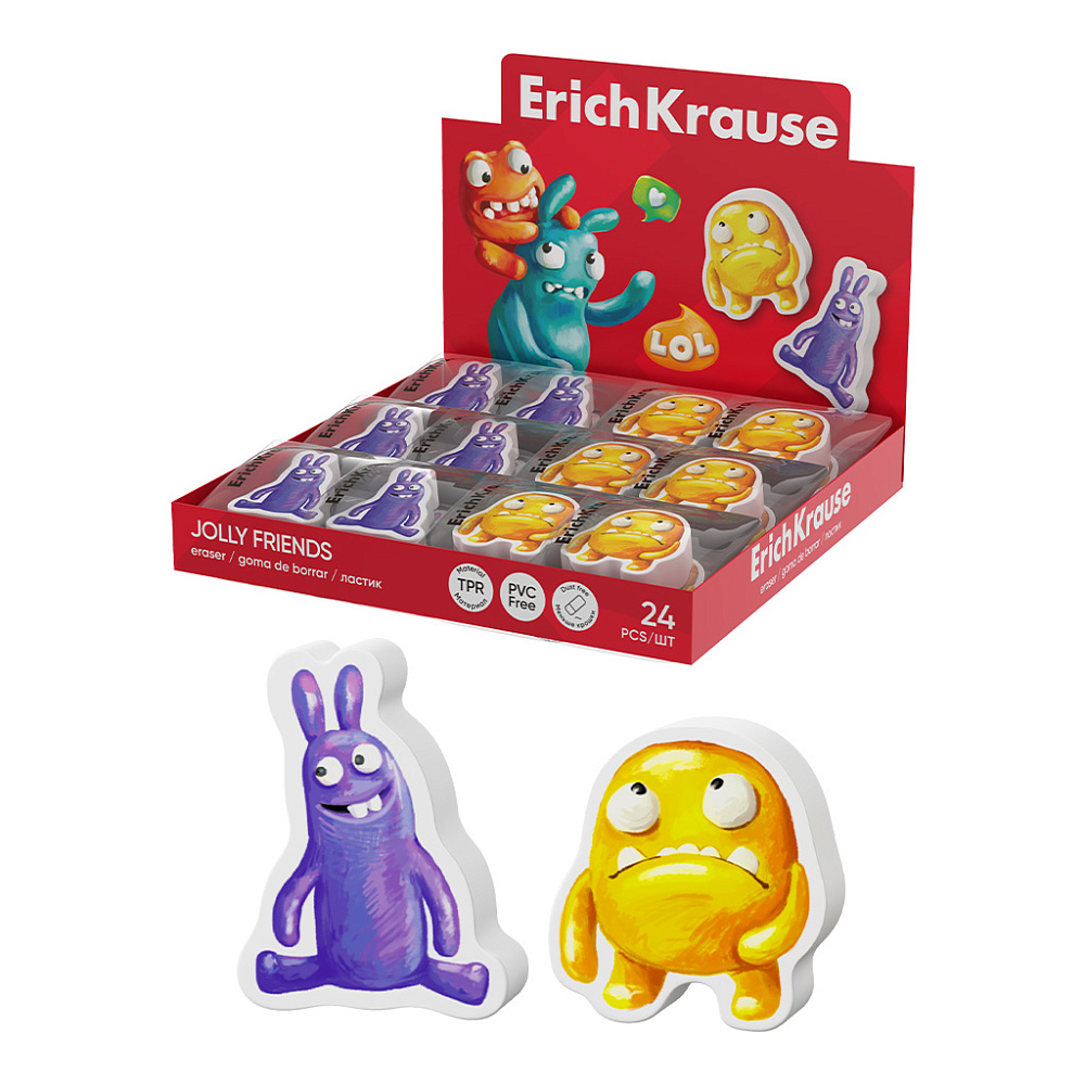 Ластик ErichKrause Jolly Friends (в коробке по 24 шт.)