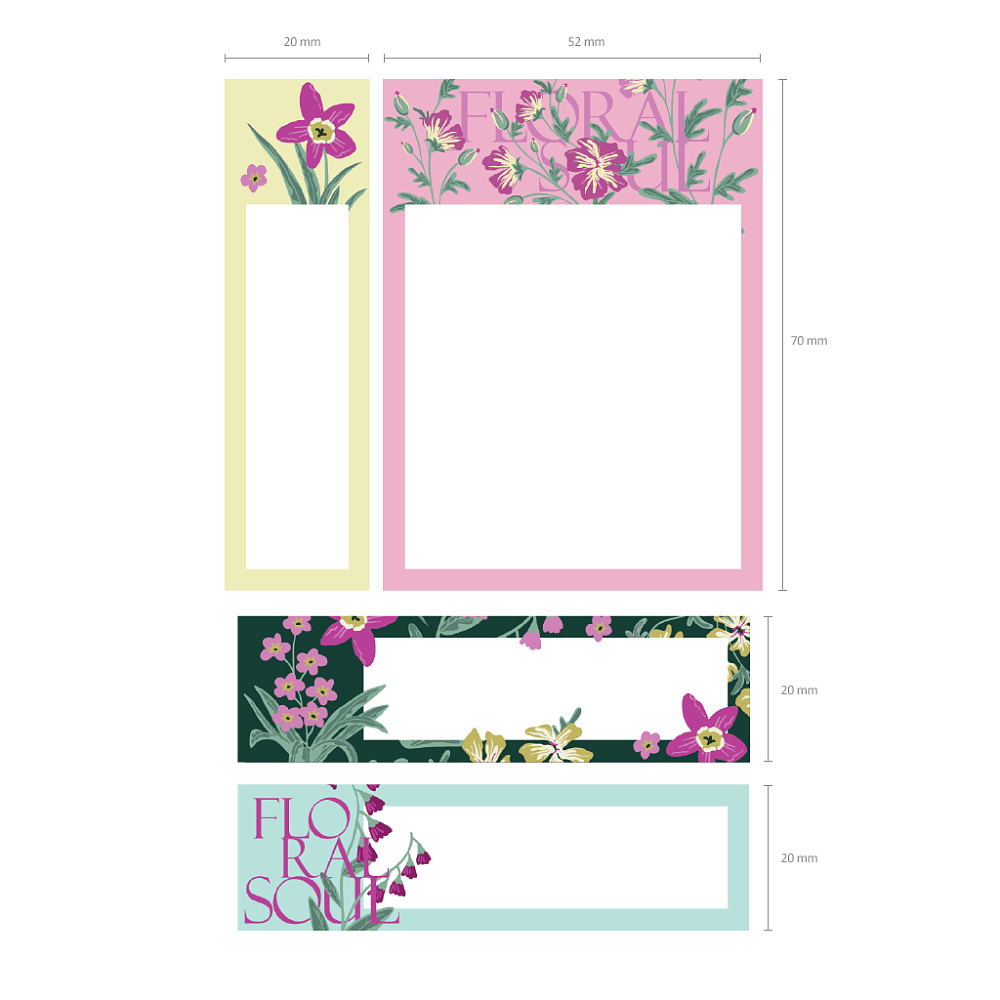 Клейкие закладки бумажные ErichKrause Floral Soul, 70X52 мм, 20X70 мм, 70X20 мм, 80 листов