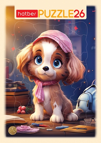 ПАЗЛЫ для детей 26 элементов А4ф 200х300мм в Рамке -Забавный щенок-
