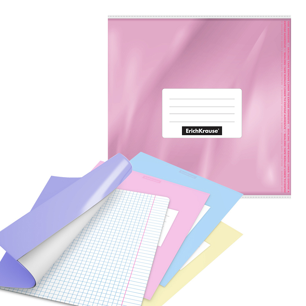 Набор обложек из высококачественного полупрозрачного пластика с особо прочными швами и текстурой поверхности "апельсиновая корка", на которой не видно отпечатков пальцев и мелких царапин. Надежно защищают тетради и дневники от повреждений. Широкий клапан в край с клеевым краем позволяет адаптировать обложку к размеру тетради/дневника. Цвет обложки - ассорти: фиолетовый, желтый, голубой, розовый. Размер - 212х395мм, толщина - 0.1мм. В наборе имеются стикеры для подписи. Гарантированно подходят для продукции ErichKrause®. Код и баркод на каждой единице товара.