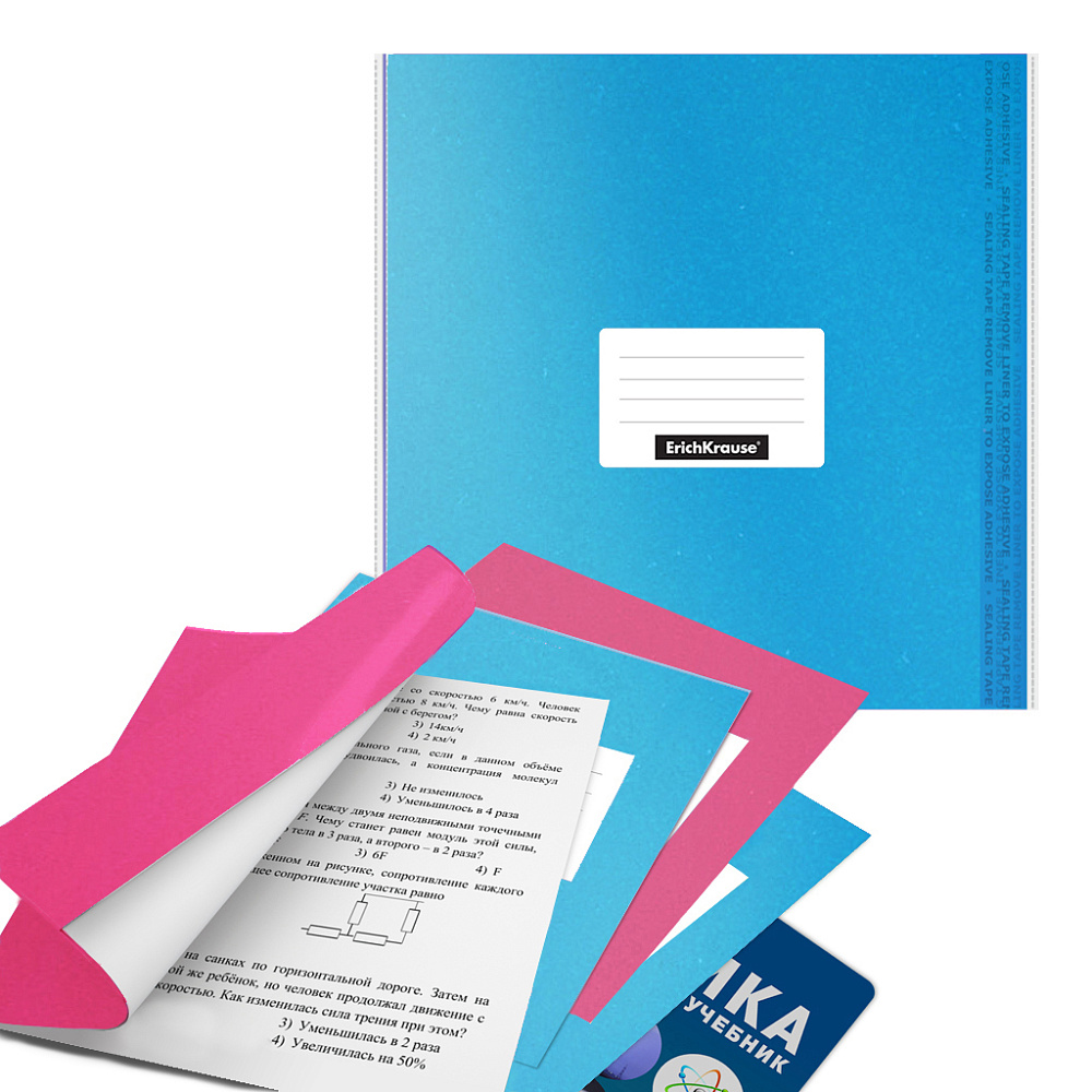Набор пласт. обложек ErichKrause Glossy Bubble Gum, арома, для учеб., с кл. край, клап. в край, стик. для подп., 232х440мм, 100мкм (п.12шт)