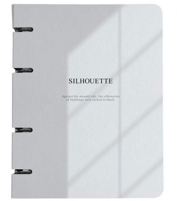 Обложка: картон 320 г/м2, печать 4+4, ламинация, микротекстурирование, скругление углов. Спираль сбоку. Внутренний блок: офсетная печать, бумага 100% белизны, 65г/м2. Дизайн внутреннего блока "в клетку".