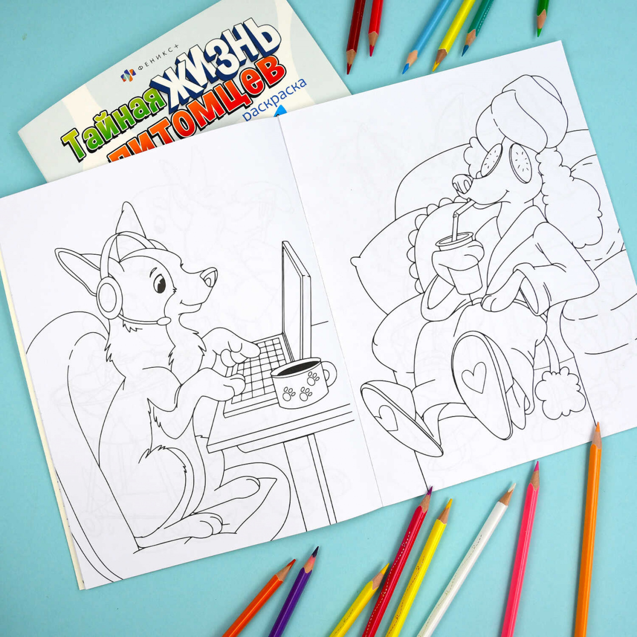 Раскраска ФЕНИКС А4- "Тайная жизнь питомцев.Собаки и щенки" 8л.. блок офсет, 200х260 мм