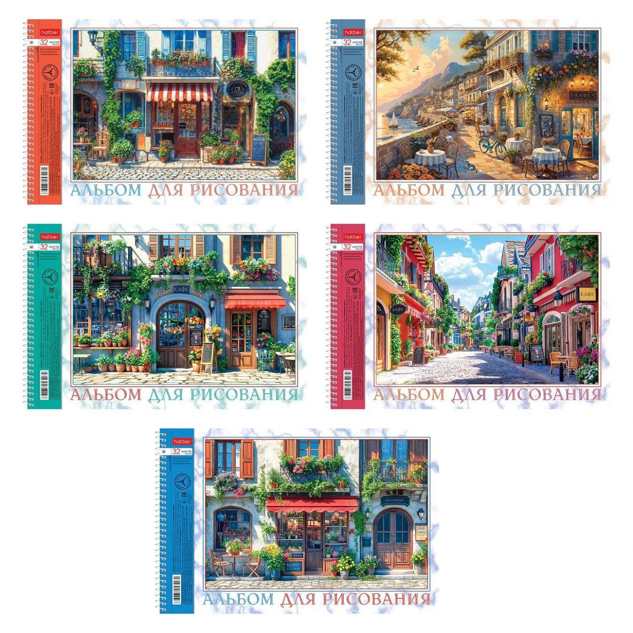 АЛЬБОМ для рисования 32л А4ф перфорация на отрыв на спирали 5 диз.в блоке серия -Курортный городок
