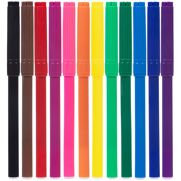 Фломастеры для рисования на бумаге и раскрашивания, подходят для детей младшего и школьного возраста. Чернила нетоксичны и безопасны для детей, легко смываются с рук и одежды. Изготовлены из первичного полипропилена, который предотвращает высыхание и не оставляет острых краёв при механическом повреждении корпуса. Специальная форма пишущего узла предотвращает его проваливание внутрь корпуса при сильном нажатии. Увеличенный размер пишущего узла: 2,3 мм. Увеличенная длина письма: 600м.