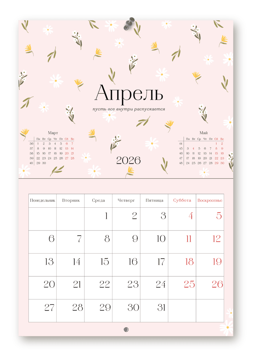 Календарь 2026, настенный, Be Smart, 30х22 см, мягкий переплет, скрепка. Коллекция "April", 12 листов